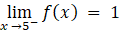 Dla argumentu x = 5 wartości funkcji f dążą od lewej i prawej strony do wartości 1.