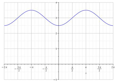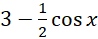 , w tym celu musisz odbić symetrycznie wykres czarny względem osi OX oraz zmniejszyć jego wartości dwukrotnie. Na sam koniec podnieś ten wykres o trzy jednostki w górę, dostając wykres niebieski funkcji: