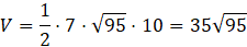Wykorzystaj twierdzenie Pitagorasa, żeby obliczyć pozostałą przyprostokątną. Oblicz objętość całej bryły, a następnie wykorzystaj podobieństwo brył i oblicz objętość odciętego kawałka. Objętość zacieniowanej bryły to różnica dwóch obliczonych objętości.