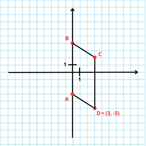 Masz dane punkty A=(0,-3), B=(0,4), C=(3,2). Na podstawie tych informacji, znajdź taki punkt D, aby czworokąt ABCD był równoległobokiem.