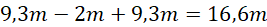 Aby dowiedzieć się jaką drogę przebyła piłka to od jej maksymalnej wysokości odejmij 2 metry (startowała z wysokości dwóch metrów), a następnie dodaj do wyniku 9,3m drogi jaką pokonała wracając na ziemię.