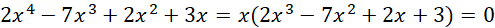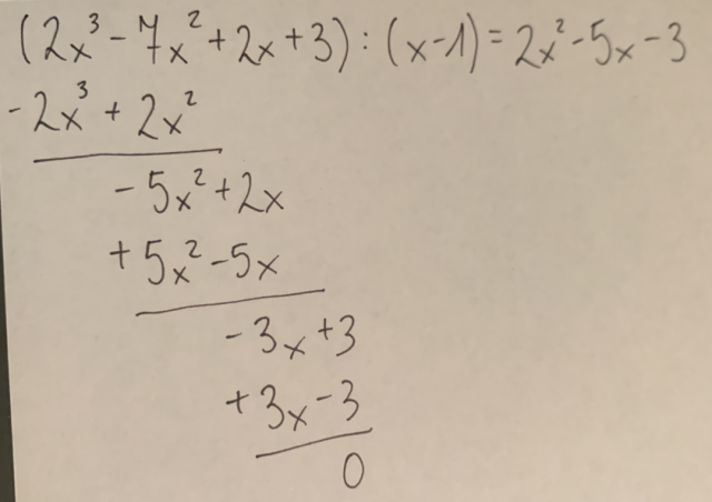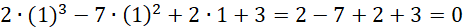 Znajdź pierwiastek całkowity wśród dzielników wyrazu wolnego tj. -3, -1, 1, 3 wielomianu