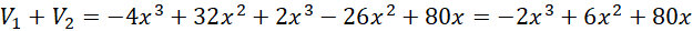 Zapisz wielomian V zmiennej x opisujący objętość graniastosłupa o podstawie trójkąta korzystając ze wzoru: