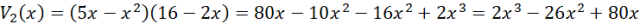 Zapisz wielomian V zmiennej x opisujący objętość graniastosłupa o podstawie prostokąta korzystając ze wzoru: