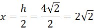 Oblicz x. Korzystaj z własności trójkąta 45, 45, 90.