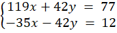 Najpierw obustronnie pomnóż pierwsze równanie przez 7, drugie równanie przez -6, a następnie dodaj równania do siebie.