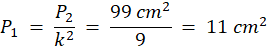 Skorzystaj z własności, że stosunek pól figur podobnych jest równy kwadratowi skali ich podobieństwa. Następnie przekształć go i wyznacz P1.