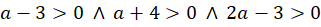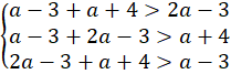Wyznacz wartości a, dla których długościami boków trójkąta są liczby a – 3, a + 4, 2a – 3.