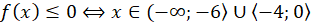 Stwórz szkic wykresu funkcji. Odczytaj przedziały argumentów, dla których wykres funkcji znajduje się pod lub na osi OX (wartości przyjmowane przez funkcję są niedodatnie).