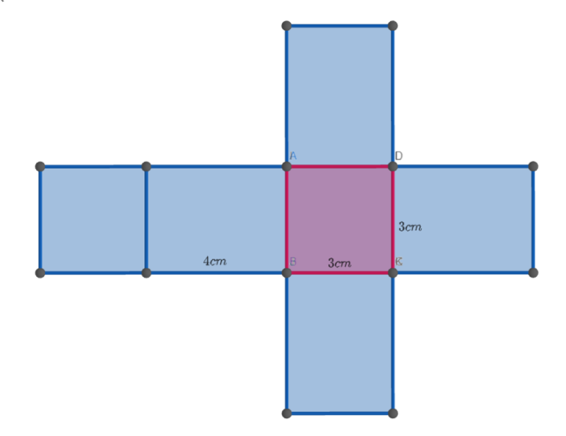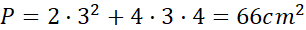 W tym zadaniu musisz narysować siatkę prostopadłościanu i obliczyć jego pole powierzchni całkowitej, jeśli jego krawędzie to 3 cm, 3 cm, 4 cm.