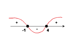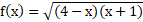 Zapisz funkcję pod jednym pierwiastkiem i sporządź rysunek. Zauważ, że funkcja przyjmuje wartości ujemne w przedziale od -1 do 4. Pamiętaj, że wyrażenie pod pierwiastkiem musi być większe bądź równe 0, dlatego -1 i 4 wchodzi do dziedziny, więc przedział będzie domknięty.