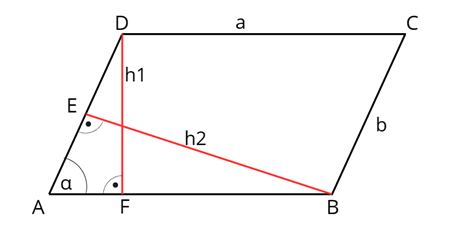 Wyznacz a z równania . Wyprowadź stosunek . Oblicz a i b ze wzoru na pole równoległoboku.