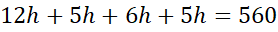 Wyznacz wysokość graniastosłupa prostego, którego podstawą jest trapez równoramienny o bokach długości 12 cm, 5 cm, 6 cm i 5 cm, jeśli wiadomo, że jego pole powierzchni bocznej jest równe 560 cm2.