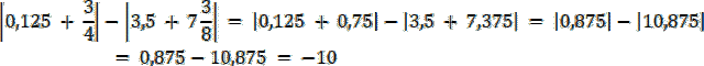 Aby rozwiązać to zadanie należy najpierw zamienić ułamki zwykłe na ułamki dziesiętne, następnie zsumować liczby w wartości bezwzględnej. Potem zweryfikować je pod kątem czy są nieujemne czy ujemne i wyciągnąć z wartości bezwzględnej i wykonać odejmowanie na nich. Otrzymany wynik to liczba–10, która należy do liczb całkowitych.