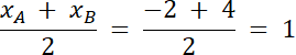 współrzędne środka odcinka AB: S(1, 1)