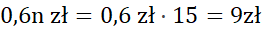 Na początku musisz pomnożyć cenę jednego jajka przez ich ilość. Po zapisaniu wyrażenia w postaci 0,6n, wstaw w miejsce n podaną w podpunkcie wartość. Na koniec dokonaj mnożenia.