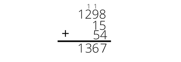 Musisz sposobem pisemnym obliczyć 1298 + 15 + 54.