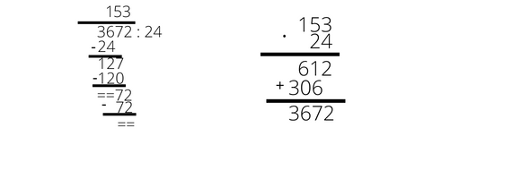 W pierwszej kolejności musisz wykonać działanie 3672 : 24 = 153. Następnie otrzymany wynik sprawdzić za pomocą mnożenie, czyli wykonać 153 ∙ 24 = 3672.