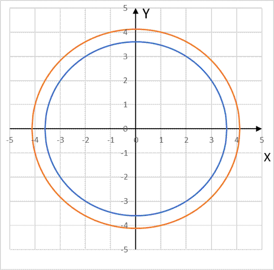 W tym zadaniu narysuj w jednym układzie współrzędnych okręgi K1 i K2, następnie oblicz pole pierścienia kołowego ograniczonego tymi okręgami.
