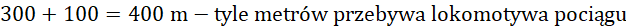 Lokomotywa pociągu przebywa 400 m. Od czasu wjazdu do tunelu i wyjazdu z niego mija 16 sekund.
