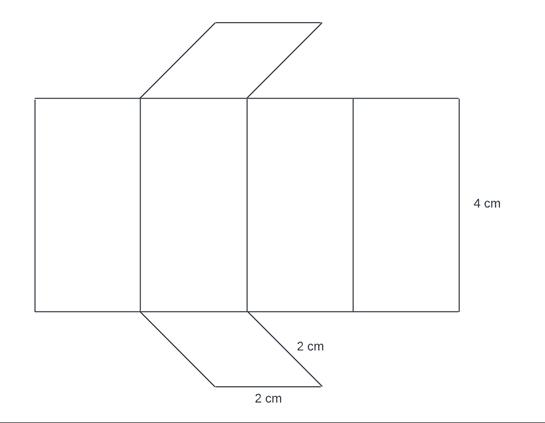 Dany jest graniastosłup o wysokości długości 4 cm oraz mający podstawę w kształcie rombu o boku 2 cm. Narysuj jego siatkę.