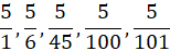 Licznik to liczba nad kreską ułamkową. Ma być równy 5, a mianownik ma być dowolny.