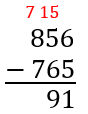 Sprawdzenie: 91 + 765 = 856.