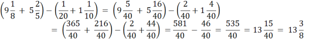Sprowadzamy do wspólnego mianownika, zamieniamy liczby mieszane na ułamki niewłaściwe i wykonujemy działania, na koniec zamieniamy ułamek niewłaściwy na liczbę mieszaną i skracamy do najprostszej postaci.