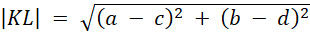 Długość odcinka KL, gdzie K = (a, b) oraz L = (c, d), można obliczyć ze wzoru: