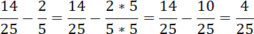 Wspólnym mianownikiem będzie liczba 25. Pamiętaj, aby wynik doprowadzić do postaci nieskracalnej.