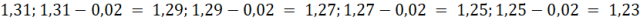 Zapisz 5 liczb, zaczynając od 1,31 i każda kolejna jest mniejsza od poprzedniej o 0,02.