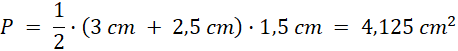 Pole trapezu to suma długości podstaw pomnożona przez wysokość i podzielona na 2.