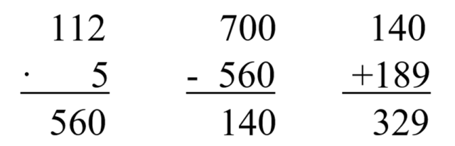 III. 700 – 112 · 5 + 189 = 700 – 560 + 189 = 140 + 189 = 329
