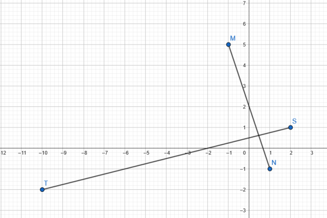 Punkt P narysuj w punkcie (-1, 5). Punkt R narysuj tak, aby od P dojść do niego taką samą drogą jak od M do N, tylko że zamień góra/dół z lewo/prawo – czyli 6 w lewo i 3 w dół, ale skoro masz mieć odcinek dwa razy dłuższy, to całą drogę mnożysz przez 2, czyli idź 12 w lewo i 6 w dół.