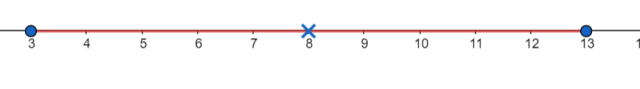 Aby rozwiązać nierówność zaznacz na osi wszystkie te punkty, których odległość od 8 jest mniejsza lub równa 5.