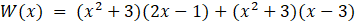 Wielomian rozłóż na czynniki wyłączając przed nawias wspólny czynnik x2 + 3. Następnie uporządkuj wyrażenie pozostałe w nawiasie. Wielomianu x2 + 3 nie możesz dalej rozkładać na czynniki, ponieważ jego wyróżnik jest ujemny.