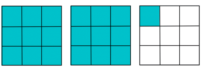 W tym zadaniu musisz zamalować podany obszar, czyli 19 spośród 27 elementów.