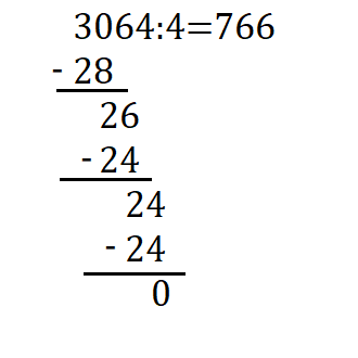 W tym zadaniu musisz podzielić 3064 : 4 sposobem pisemnym.