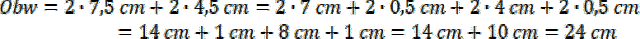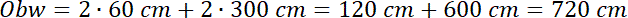 Oblicz obwód prostokąta ze wzoru . Aby wykonać działania w pamięci, podziel je na prostsze działania częściowe. Przed wykonaniem działań zamień jednostki na centymetry (.