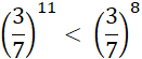 Jeżeli w podstawie potęgi jest liczba mniejsza od jedynki i większa od zera, to większa będzie liczba podniesiona do niższej potęgi.