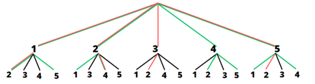 Ω = {12, 13, 14, 15, 21, 23, 24, 25, 31, 32, 34, 35, 41, 42, 43, 45, 51, 52, 53, 54}