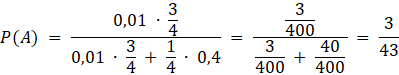 Oblicz prawdopodobieństwo podstawiając dane pod wzór Bayesa (podziel prawdopodobieństwo zdarzenia, że otrzymano błąd dobrym miernikiem przez prawdopodobieństwo zdarzenia, że ogólnie otrzymano błąd). Otrzymasz