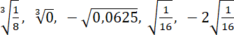 Wykonaj pierwiastkowanie jako operacje odwrotną względem potęgowania. Należy zwracać uwagę na stopień pierwiastka oraz znaki.