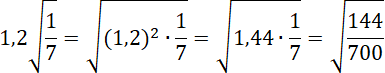 . Korzystając z tej własności włącz czynnik pod pierwiastek i zapisz wynik iloczynu.