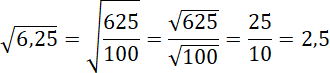 Zamień liczbę pod pierwiastkiem na ułamek dziesiętny, następnie pierwiastek ilorazu przekształć w iloraz pierwiastków.