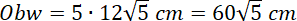 Wielokąt foremny to taki wielokąt, który ma wszystkie kąty wewnętrzne równe i wszystkie boki równej długości. W tym podpunkcie jest to pięciokąt – ma 5 boków. Oblicz obwód, czyli łączną długość wszystkich boków: