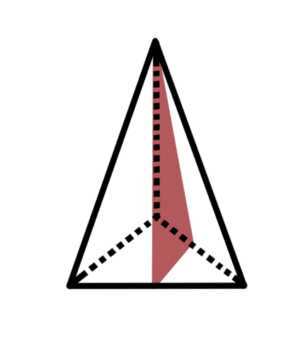 Przekrój zawierający wysokość jednej ze ścian bocznych oraz środek jednej z krawędzi podstawy – wybierz jedną z krawędzi podstawy i zaznacz punktem jej środek. Następnie zaznacz wysokość innej ściany bocznej i połącz ją ze środkiem krawędzi podstawy.