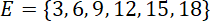 Wielokrotności 3 mniejsze od 18 to: 3, 6, 9, 12, 15, 18, więc zbiór E ma sześć elementów.
