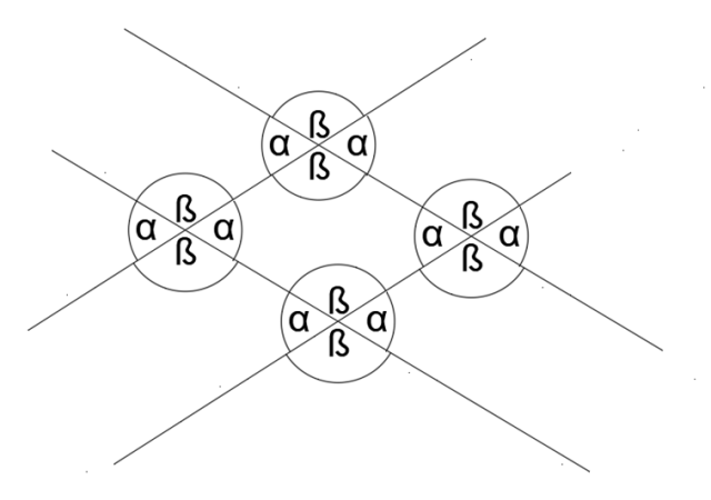 W tym zadaniu zaznacz na rysunku wszystkie kąty o mierze α oraz wszystkie kąty o mierze β.
