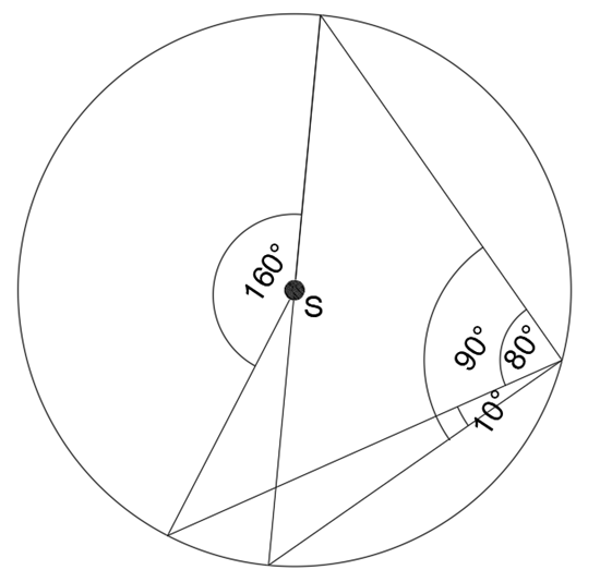 W tym zadaniu narysuj w poniższym okręgu wymienione kąty, wiedząc, że punkt S jest środkiem okręgu.